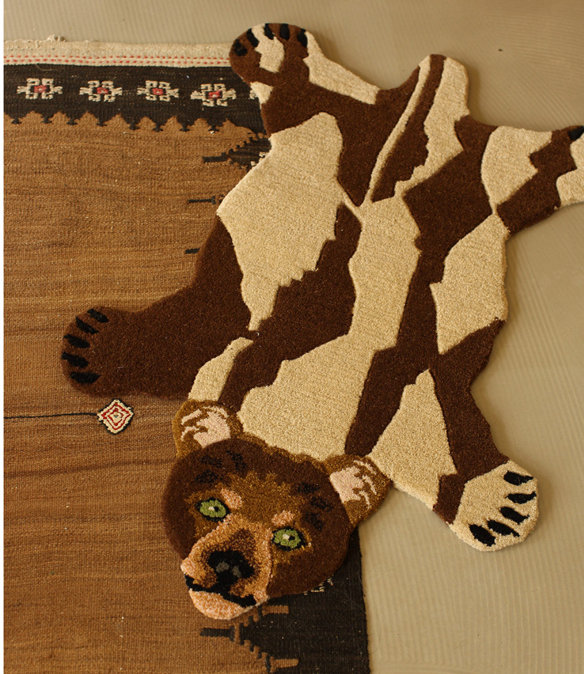 Käsintehty villamatto, takaosa puuvillaa.